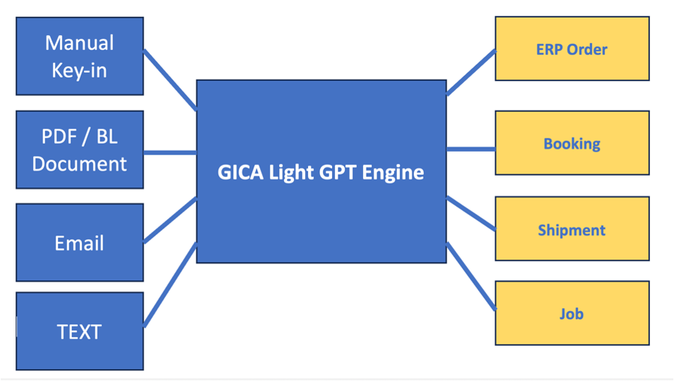 With GICA AI technology LGPT (Light Generative Pre-Trained Transformer), job data is automatically filled up by LGPT when creating booking/shipment.